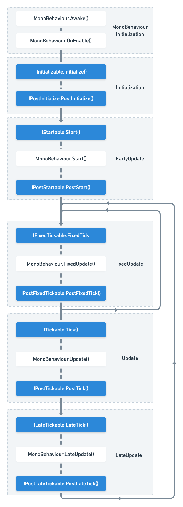 IPostTickable.PostTick() | After MonoBehaviour.Update() |